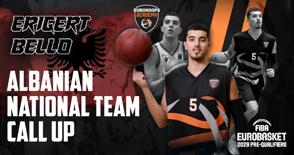 Ο Εριγκέρτ Μπέλλο γίνεται ο πρώτος αθλητής της Eurohoops Academy που συμμετέχει σε ομάδα Ανδρών με τα εθνικά του χρώματα! Σε ηλικία μόλις 19 ετών, ο ταλαντούχος αθλητής της Eurohoops Academy κλήθηκε από την Εθνική Αλβανίας, στο πλαίσιο της συμμετοχή της στα Pre-Qualifiers του EuroBasket 2029.